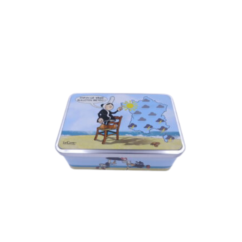 Boite métallique Mam Goz à gâteaux décorée d’un dessin de Nicolaz Le Corre vendue avec un mix de palets et galettes pur beurre ou vide.